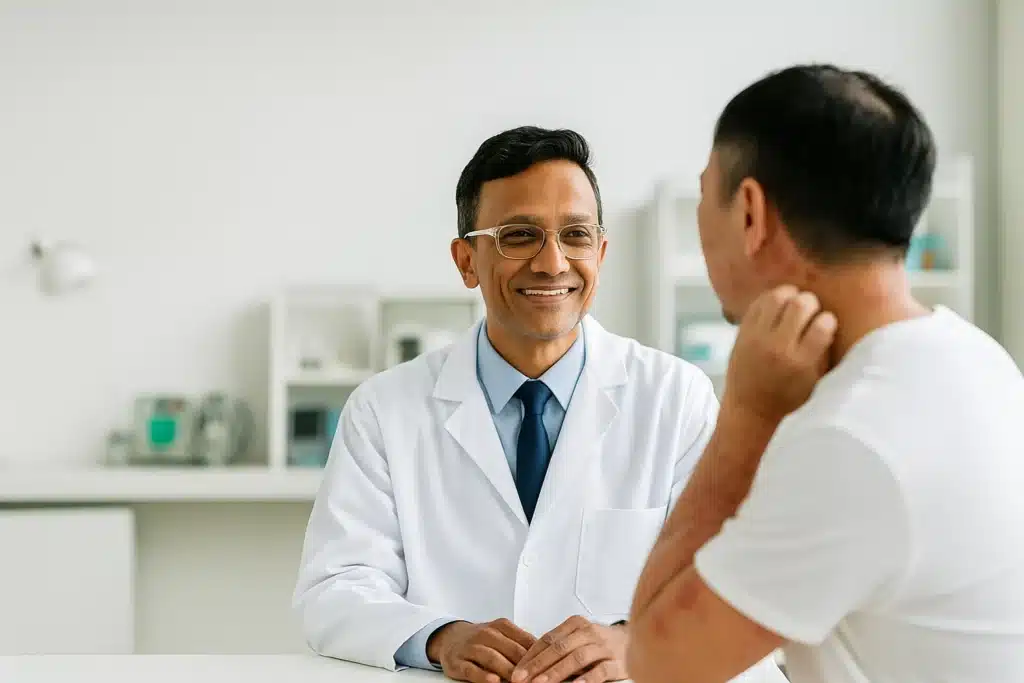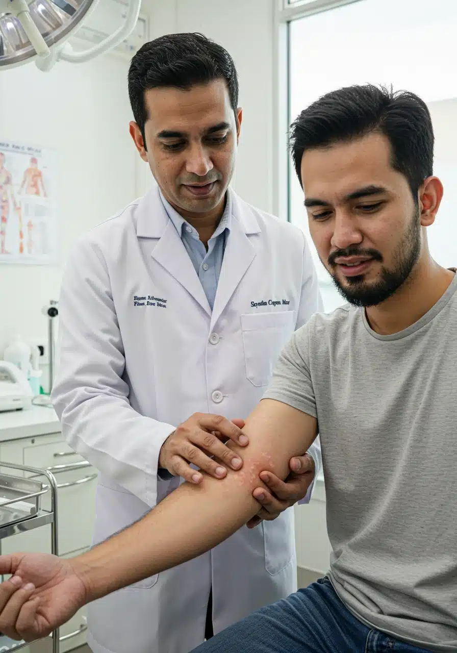 Dr. Aylwin Vincent Vasudevan, widely known as “Eczema Doc” on social media. With over 17 years of experience and a personal journey with eczema, Dr. Aylwin leads Klinik Zoi with empathy and expertise—helping patients from Nilai and across Malaysia manage eczema, allergies, and skin conditions through a unique blend of medical and diet-based therapy.