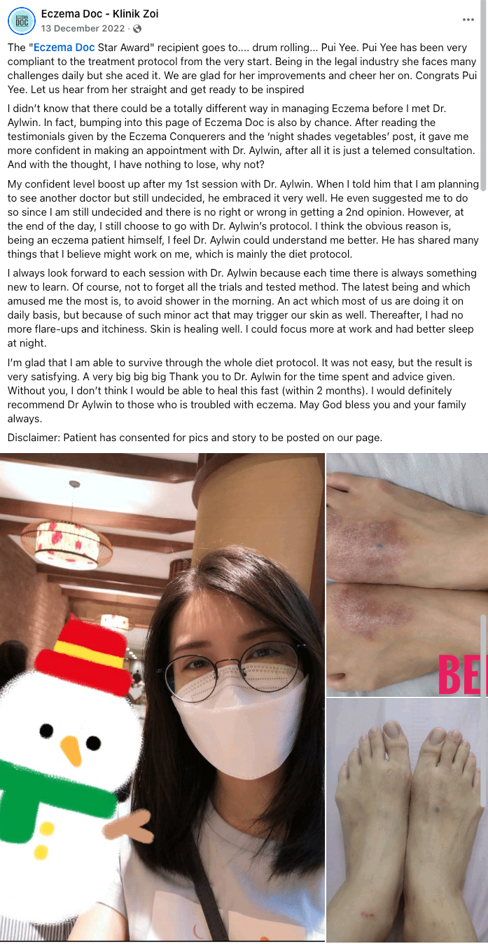 Klinik Zoi offers a unique approach to eczema care—combining expert medical treatment and proven diet therapies—all led by Dr. Aylwin, Malaysia’s “Eczema Doc.”